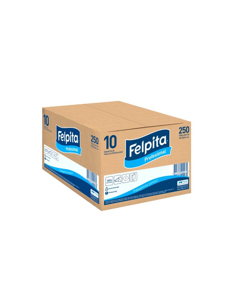 Portada » Tienda » Higiene » Toallas Intercaladas » Caja toalla intercalada Felpita 20×24 10 paquetes de 250 unidades